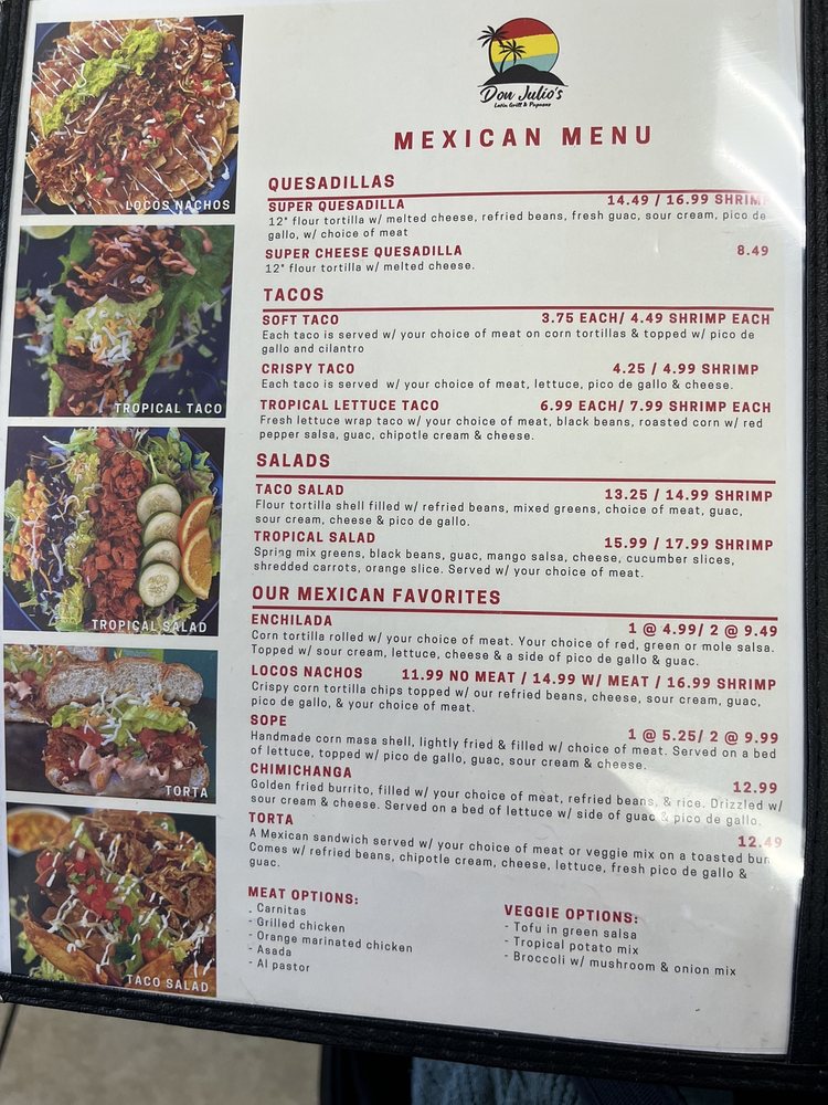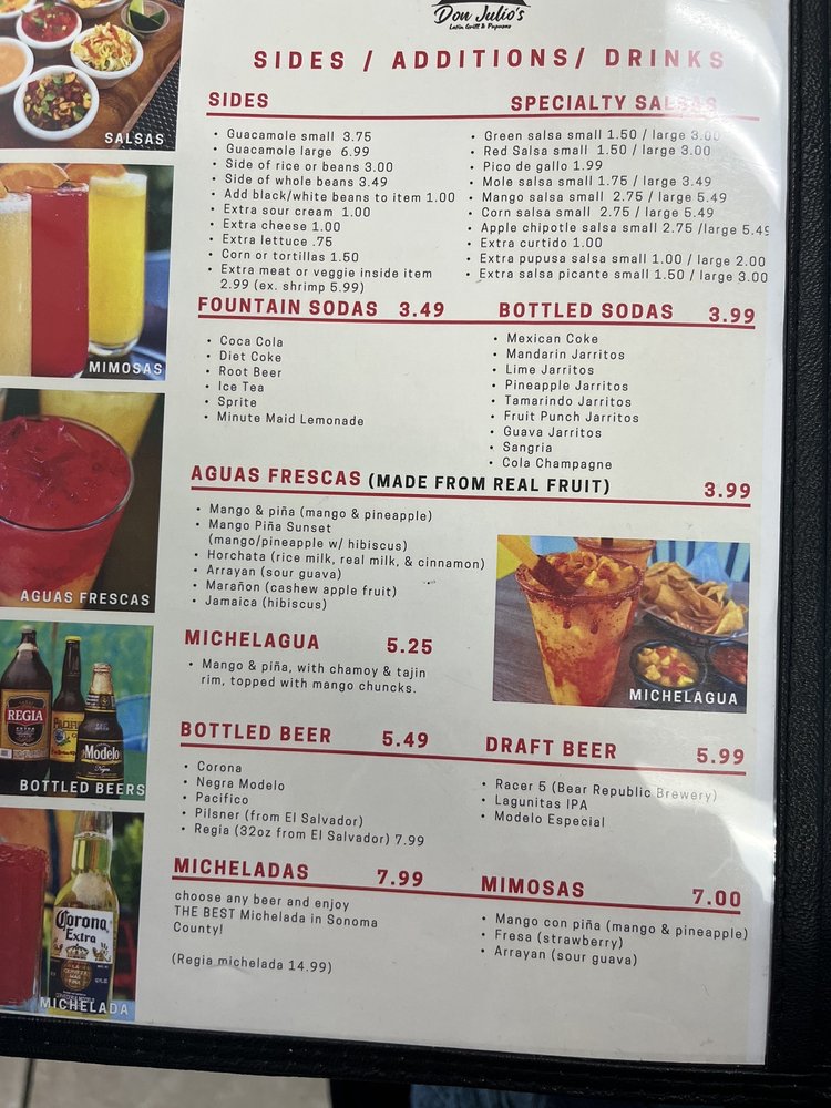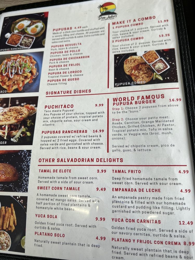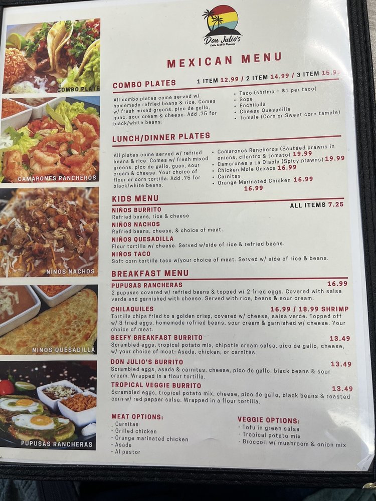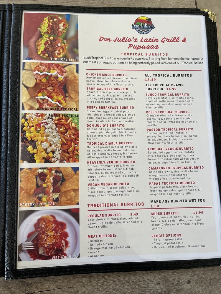 Don Julio’s Rincon Latin Grill and Pupusas, located in Rohnert Park, CA, offers a variety of traditional Salvadorian dishes, with a focus on their specialty pupusas. The menu features options such as Pupusa de Loroco, Pupusa de Queso, and Pupusa Revuelta, all served with rice, beans, and sour cream. One of the highlights is the Pupusas Rancheras Breakfast, a hearty dish of pupusas topped with refried beans, fried eggs, salsa verde, and cheese. Customers rave about the flavorful and authentic pupusas, with many praising the friendly staff and welcoming atmosphere of the restaurant. With options for vegetarians, vegans, and meat-lovers alike, Don Julio's is a must-visit for those looking to experience delicious Latin American cuisine in a casual and inviting setting.